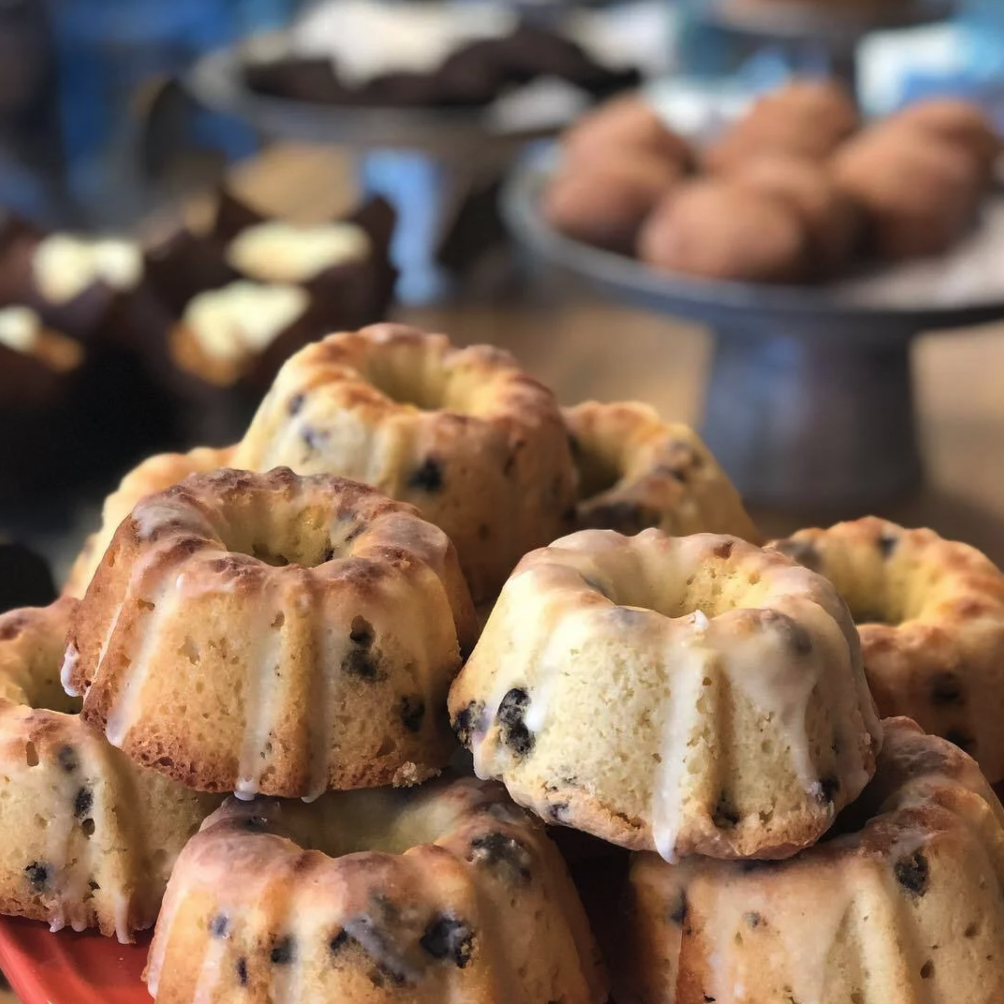Lemon Blueberry. Moist, decadent pound cake with a lemon glaze on top.
